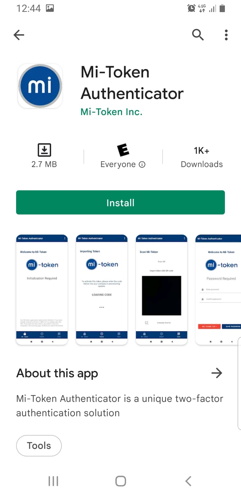 Download and install the latest version of Mi-Token Authenticator from the Google Play Store:
