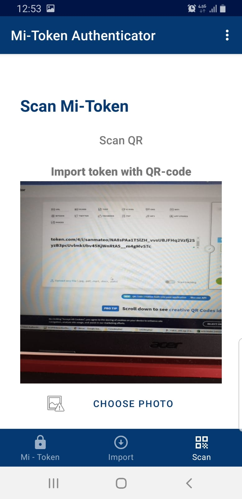 In such cases, you can try to use the app's built-in QR code scanner. To do so, you need to transform the token's URL (the one provided to you by the administrator) into a QR code.