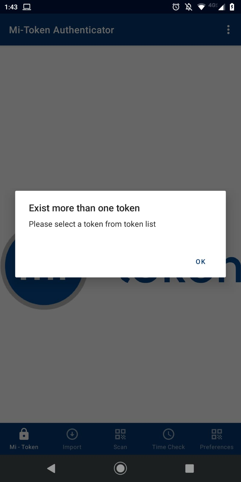 If you have more than one token installed on your device, it will let you know that there is more than one configuration and request you to select one when you open the app. Click the OK button to proceed:
